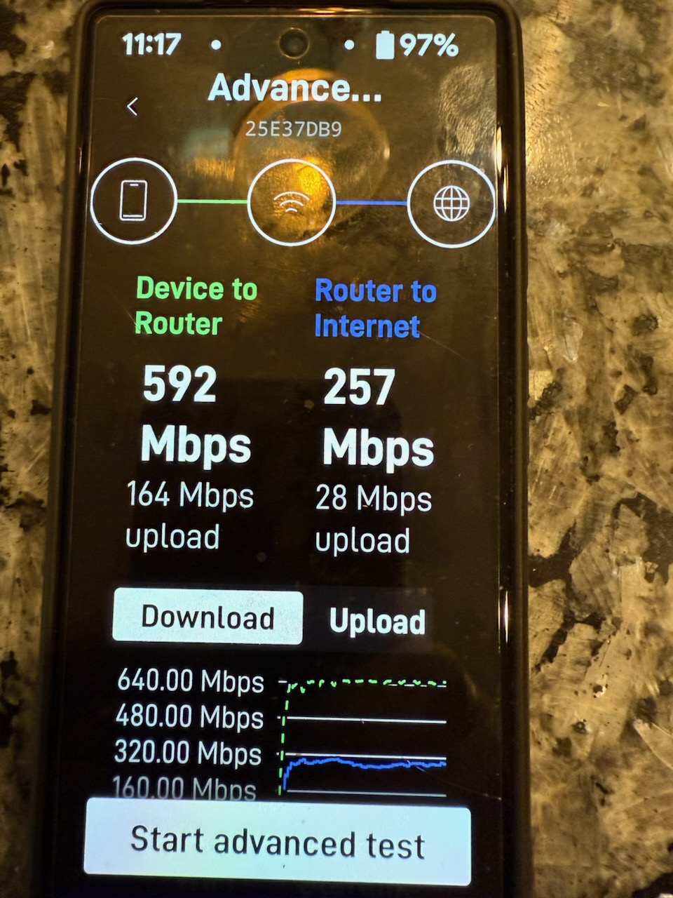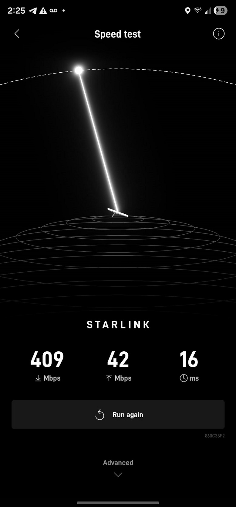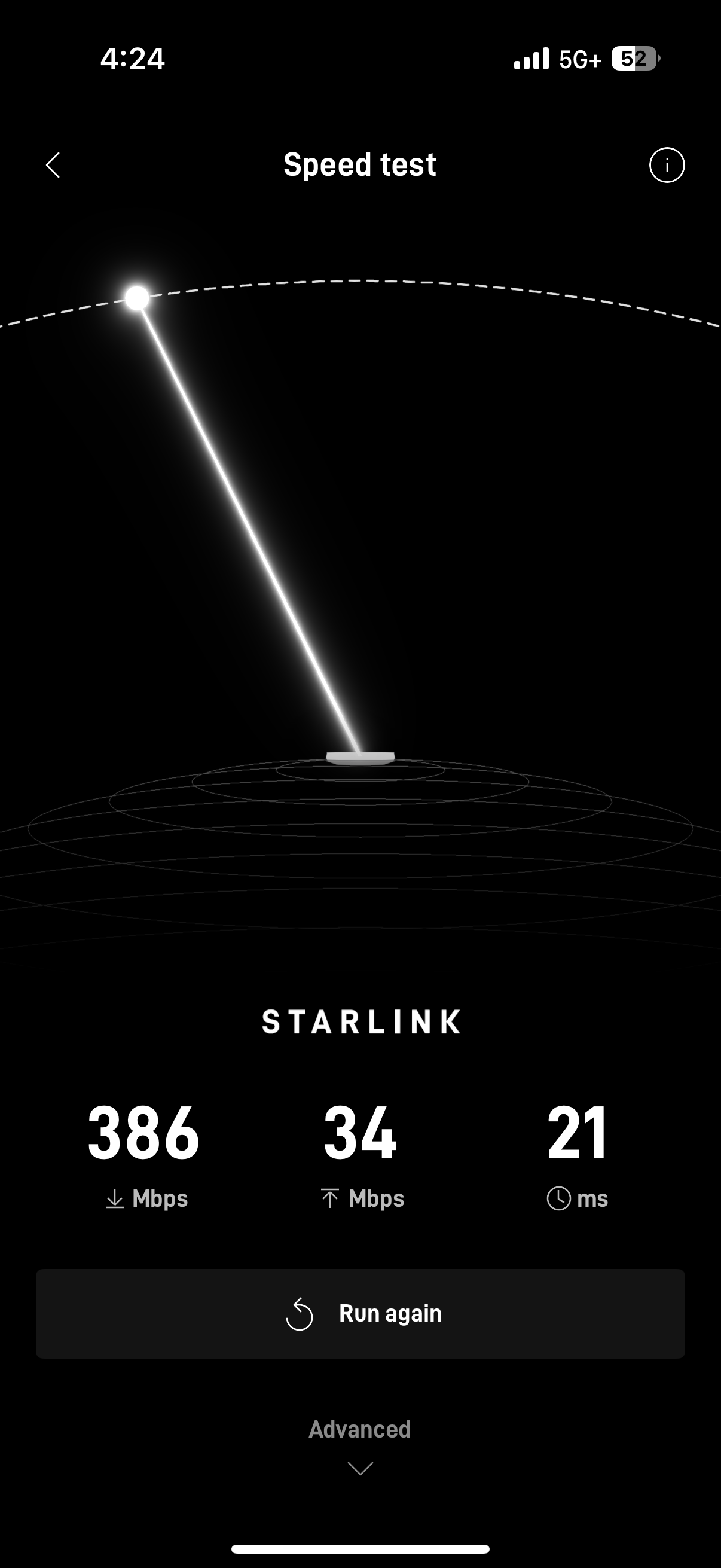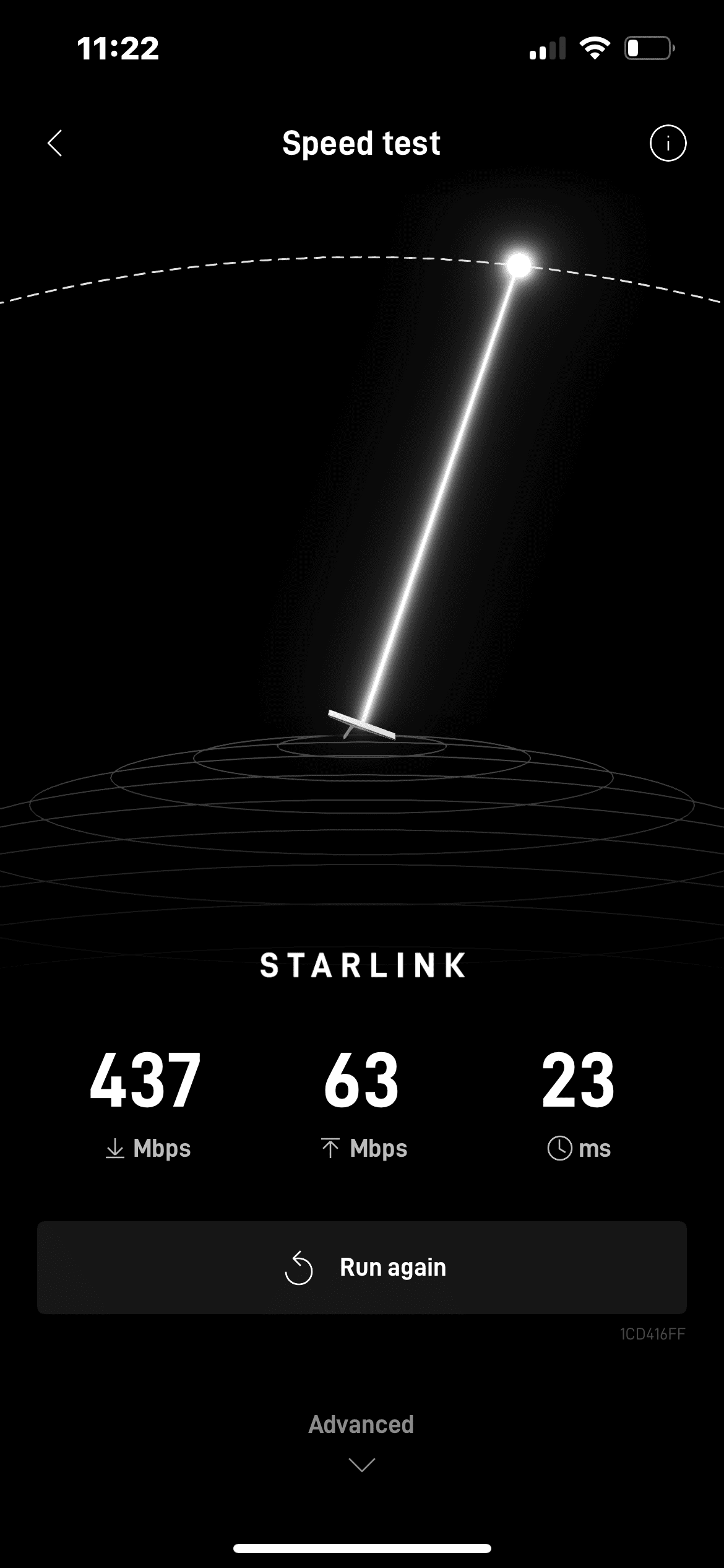 Starlink installation Advanced Speed Test in Starlink App